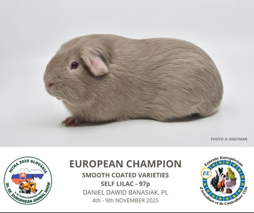 97 pkt – samica lilowy self (poniżej 6 miesięcy) – Europejski Champion, nagroda specjalna, honorowa nagroda sędziego, BEST OF BREED,