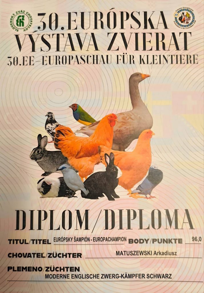 W dniach 7–9 listopada 2025 r. w centrum wystawienniczym Agrokomplex w Nitrze (Słowacja) odbyła się jubileuszowa 30. Europejska Wystawa Małych Zwierząt, organizowana przez Europejskie Stowarzyszenie Hodowców Drobiu, Gołębi, Ptaków Ozdobnych, Królików i Świnek Morskich (Entente Européenne d’Aviculture et de Cuniculture, EE) we współpracy ze Słowackim Związkiem Hodowców (Slovenský zväz chovateľov, SZCH). Zaprezentowano ponad 23 500 zwierząt pochodzących od przeszło 2 500 wystawców reprezentujących 23 kraje Europy, co podkreśla skalę i rangę wydarzenia. Wystawa stała się miejscem wymiany doświadczeń oraz prezentacji wyników pracy hodowlanej dotyczącej wielu ras i gatunków małych zwierząt. Program obejmował oceny sędziowskie, spotkania branżowe oraz liczne wydarzenia towarzyszące, podkreślające międzynarodowy charakter i wysoki poziom merytoryczny tegorocznej edycji.