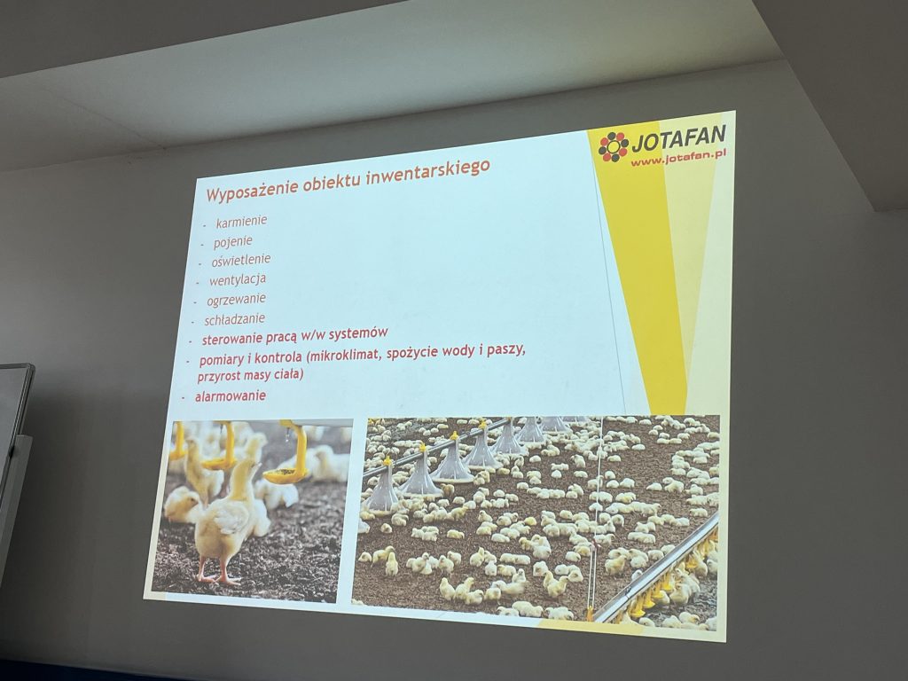 W dniu 27 października 2025 r. gościliśmy na zajęciach z przedmiotu „Intensywne systemy w produkcji zwierzęcej” dla studentów studiów II stopnia na kierunku Zootechnika właściciela firmy JOTAFAN, Pana Andrzeja Zagórskiego. Firma JOTAFAN to polski producent urządzeń elektronicznych dla rolnictwa. W pierwszej części wykładu studenci poznali profil firmy oraz wyposażenie obiektu inwentarskiego ze szczególnym zwróceniem uwagi na rolę i działanie wentylacji, nagrzewnic wodnych oraz nagrzewnic