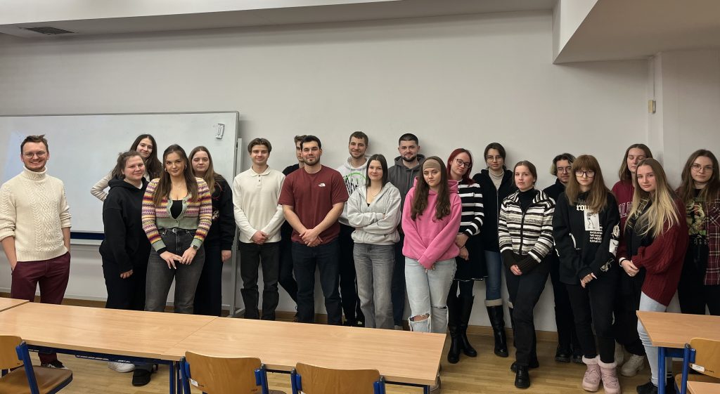 W dniu 26 stycznia 2026 r. gościliśmy na Wydziale Hodowli, Bioinżynierii i Ochrony Zwierząt w ramach zajęć z przedmiotu „Intensywne Systemy Produkcji Zwierzęcej” realizowanego dla studentów kierunku Zootechnika studiów II stopnia przedstawicielki polskiego oddziału firmy Big Dutchman Panią Dorotę Jakutę i Panią Ewę Szymańską oraz Pana dr n. wet. Krzysztofa Adamczyka reprezentującego Katedrę Patologii i Diagnostyki Weterynaryjnej Instytutu Medycyny Weterynaryjnej SGGW w Warszawie oraz gabinet weterynaryjny AVET.