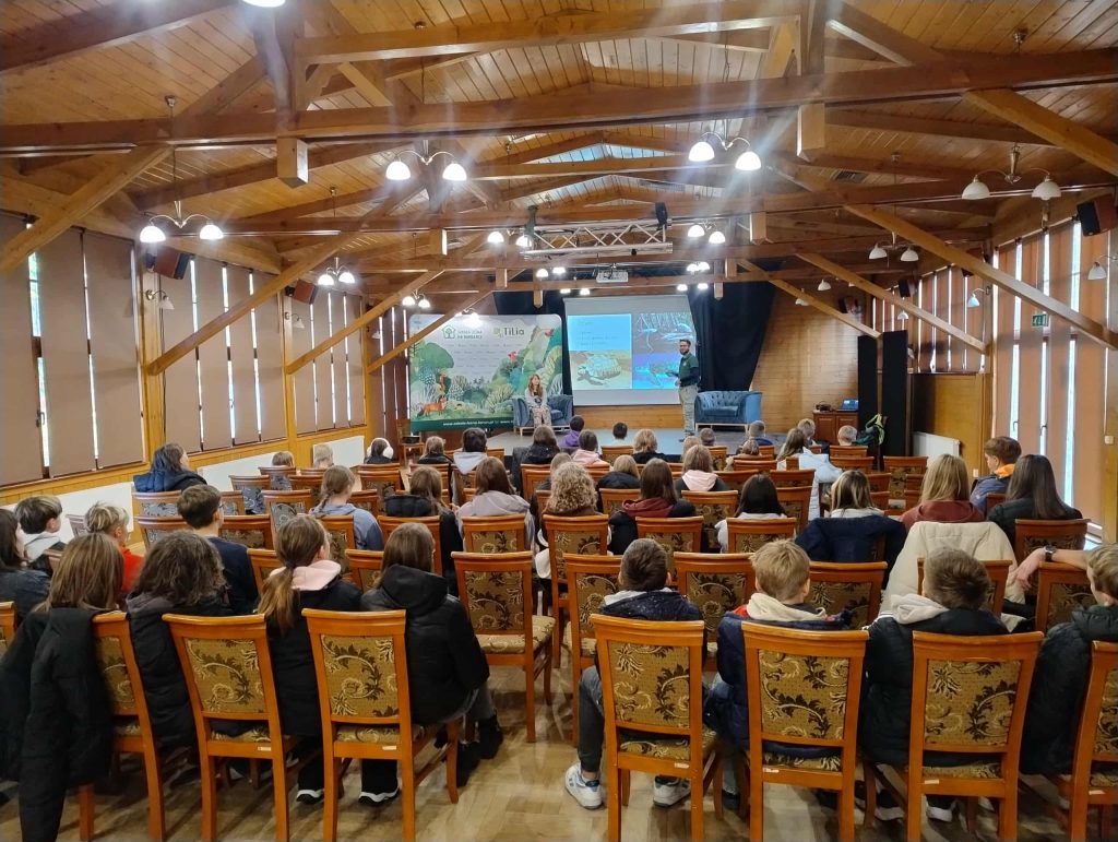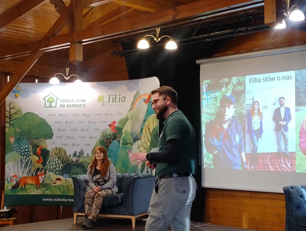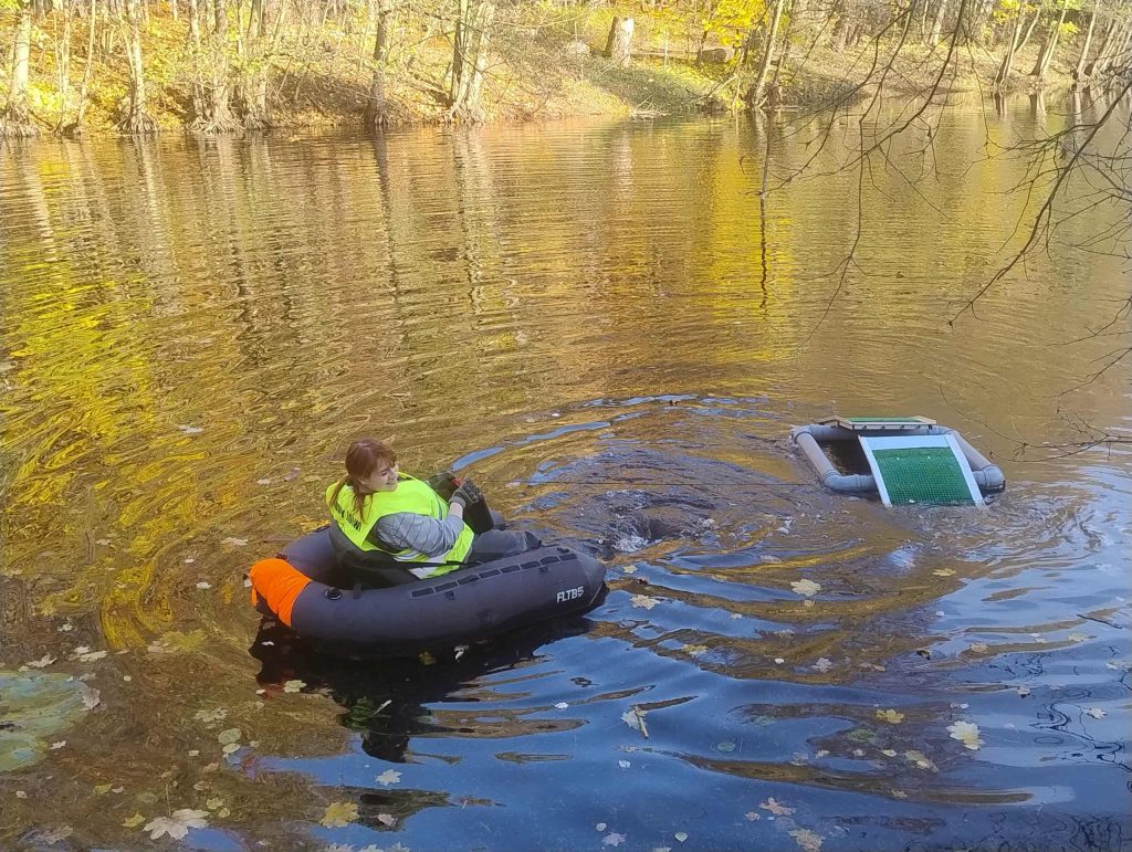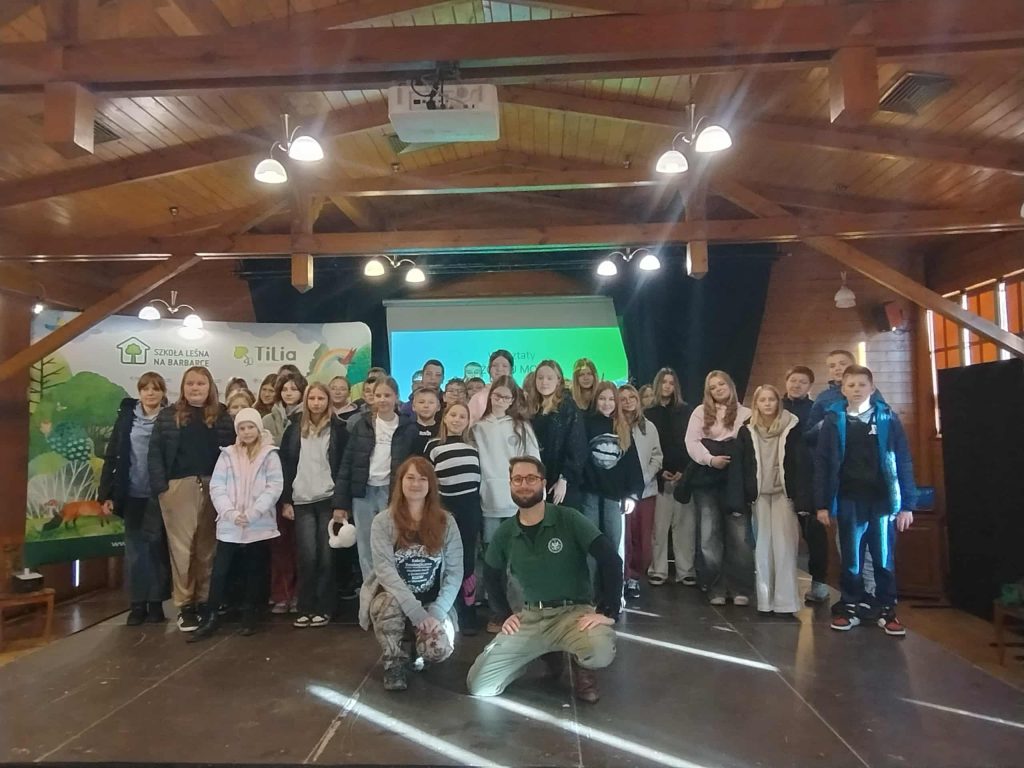 W dniu 5 listopada 2025 r. Doktoranci naszego Instytutu: Pani mgr inż. Milena Bors i Pan mgr inż. Jakub Badziukiewicz poprowadzili warsztaty pt. „O żółwiu mowa” w Szkole Leśnej Na Barbarce w Toruniu. Uczestniczyło w nich około 40 osób, głównie dzieci w wieku wczesnoszkolnym. Warsztaty podzielone były na część teoretyczną i praktyczną. Teoretyczna odbyła się w dworku na terenie Szkoły Leśnej i dotyczyła ogólnej tematyki żółwi, w tym także problemów z inwazją obcych gatunków żółwi. Część praktyczna była pokazem kontroli pułapki plażowiskowej służącej do odłowu żółwi. Ta część warsztatów odbyła się przy zbiorniku wodnym na terenie Szkoły Leśnej, gdzie wcześniej prowadzone były działania zaradcze dotyczące żółwia ozdobnego Trachemys scripta, bytującego w tym akwenie. Uczestnicy warsztatów z zaciekawienie słuchali informacji o żółwiach i zadawali dużo pytań.